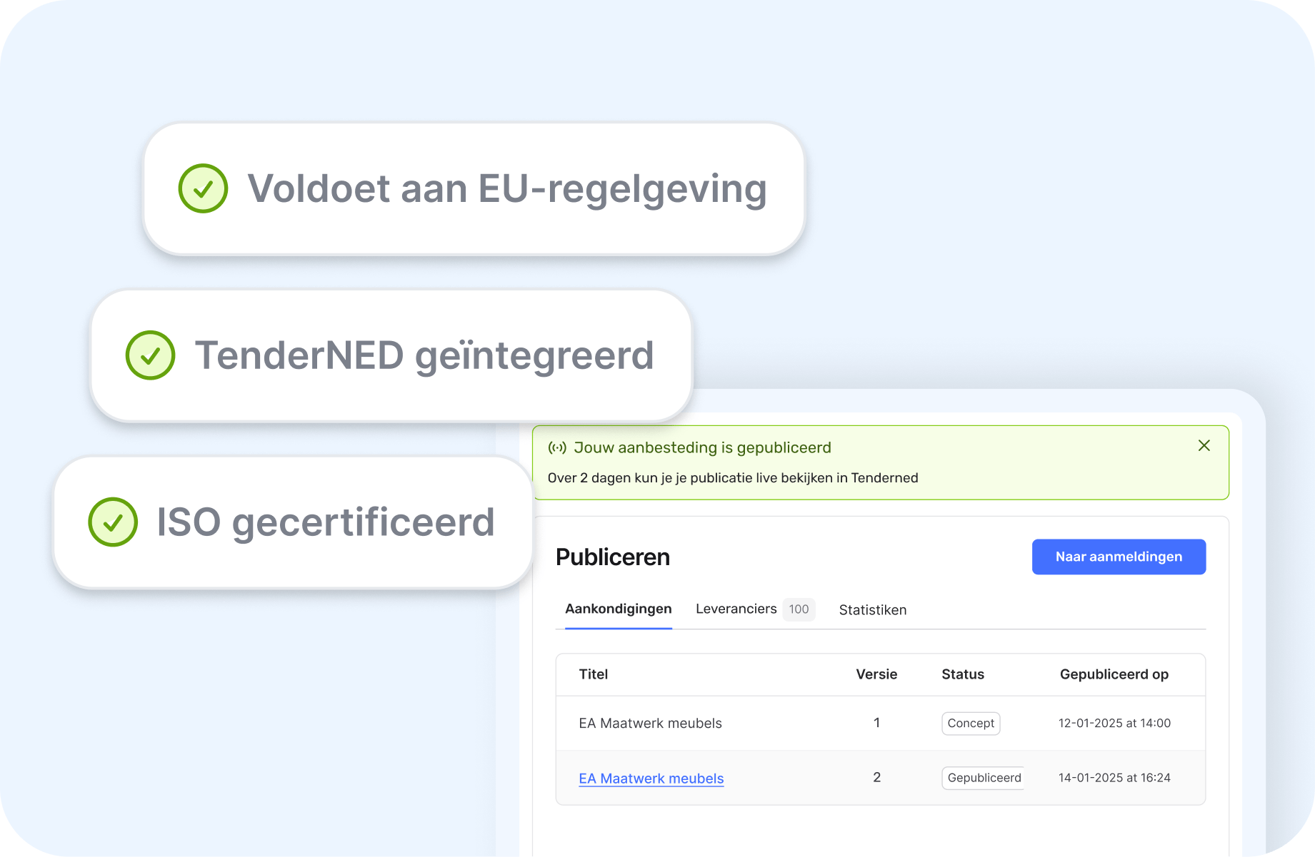 - Zie al je aanbestedingen op één overzichtelijk platform