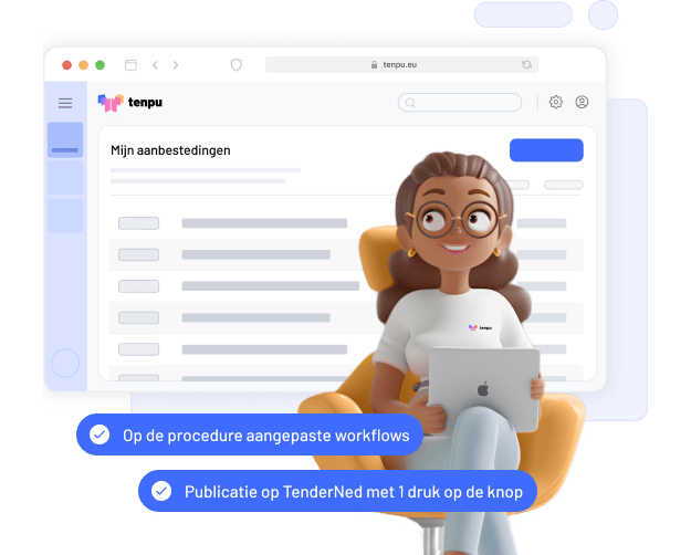 Werk je voor jouw aanbestedingen met een digitale brievenbus waar documenten in gaan en documenten uit komen? Die foutgevoelige en repetitieve handmatige taken hoef je vanaf nu niet meer te doen. Ontdek hoe Tenpu jouw aanbesteding optimaliseert met handige templates, op de procedure aangepaste workflows en eenvoudige publicatie op TenderNed. In Tenpu kan je (binnenkort) al jouw Europese aanbestedingen en marktconsultaties managen.